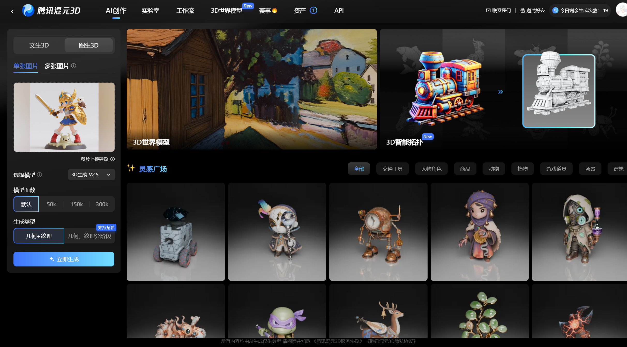 图生3D 是一种利用人工智能技术将图片转化为3D 模型的技术,通过上传合适的图片,可以引导 AI 生成更符合需求的3D 模型。混元生3D:我们可以充分探索在游戏开发、产品设计、3D打印等场景的实践或集成应用。本文档旨在为腾讯混元生3D提供一些思路建议,帮助您使用腾讯混元生3D 生成的模型效果更精美、质量更稳定、细节更丰富。