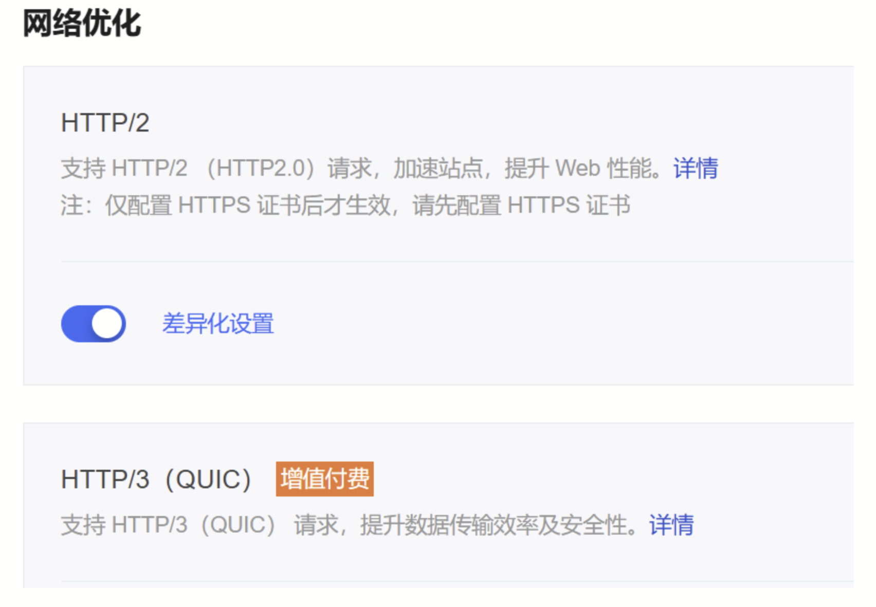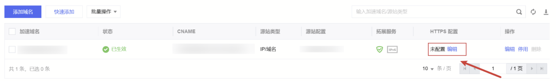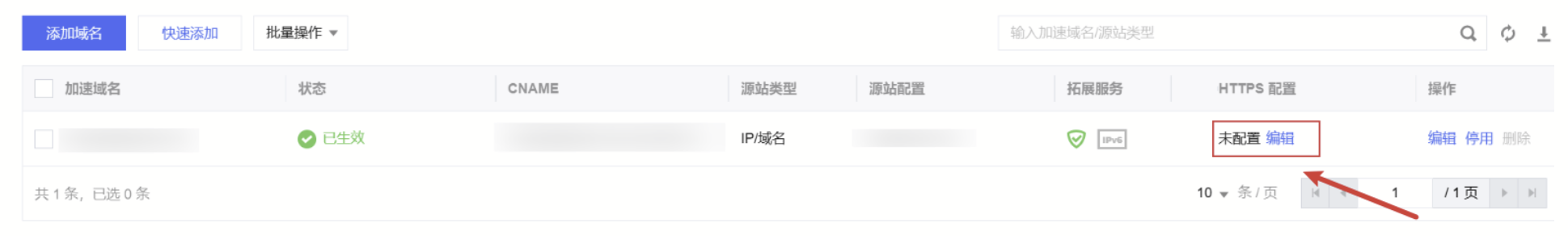 完成站点的加速,还需申请一个免费证书,点击HTTPS配置下的编辑