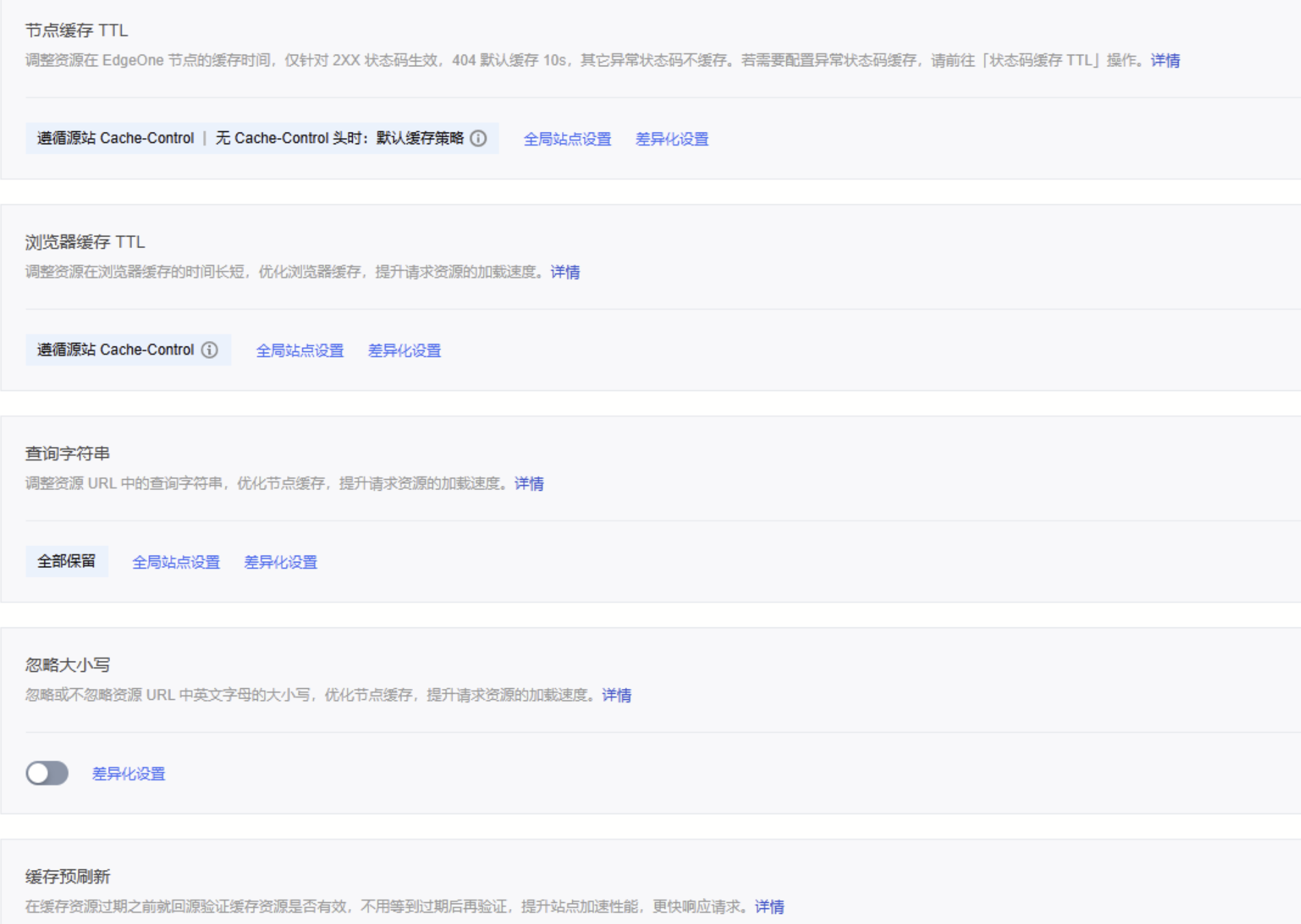配置很详细全面,支持自定义Cache Key、节点缓存TTL、浏览器缓存TTL、离线缓存等,灵活应对不同业务场景