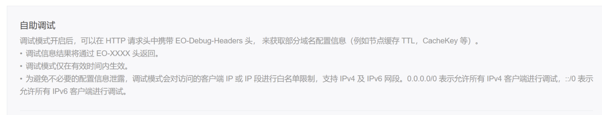 通过在 HTTP 请求头中携带 EO-Debug-Headers 头, 来获取部分域名配置信息