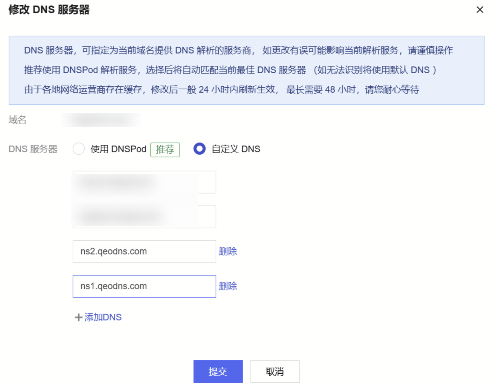 根据提示完成DNS配置,确保域名指向EdgeOne分配的节点