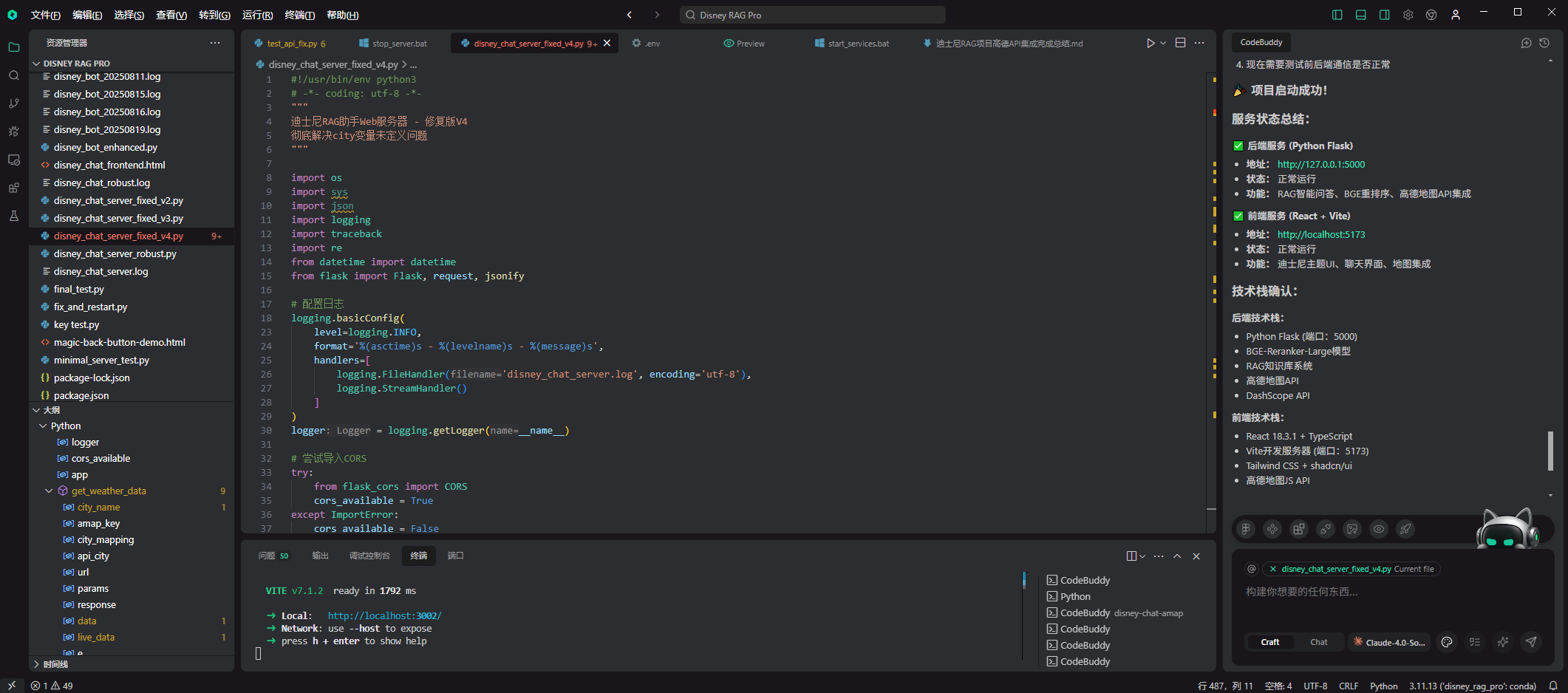在CodeBuddy平台的技术支持下,这款App集合了天气查询、实时排队预测、餐厅推荐导航等功能,让我们的迪士尼之行从时间规划到现场体验都更加轻松自如。接下来,我将为大家分享我们一天的游园体验及“迪士尼魔法助手”的实际应用场景,全程高能,干货满满,超适合即将准备园区探险的朋友!