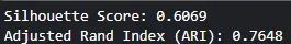 fromsklearn.metricsimportsilhouette_score, adjusted_rand_score