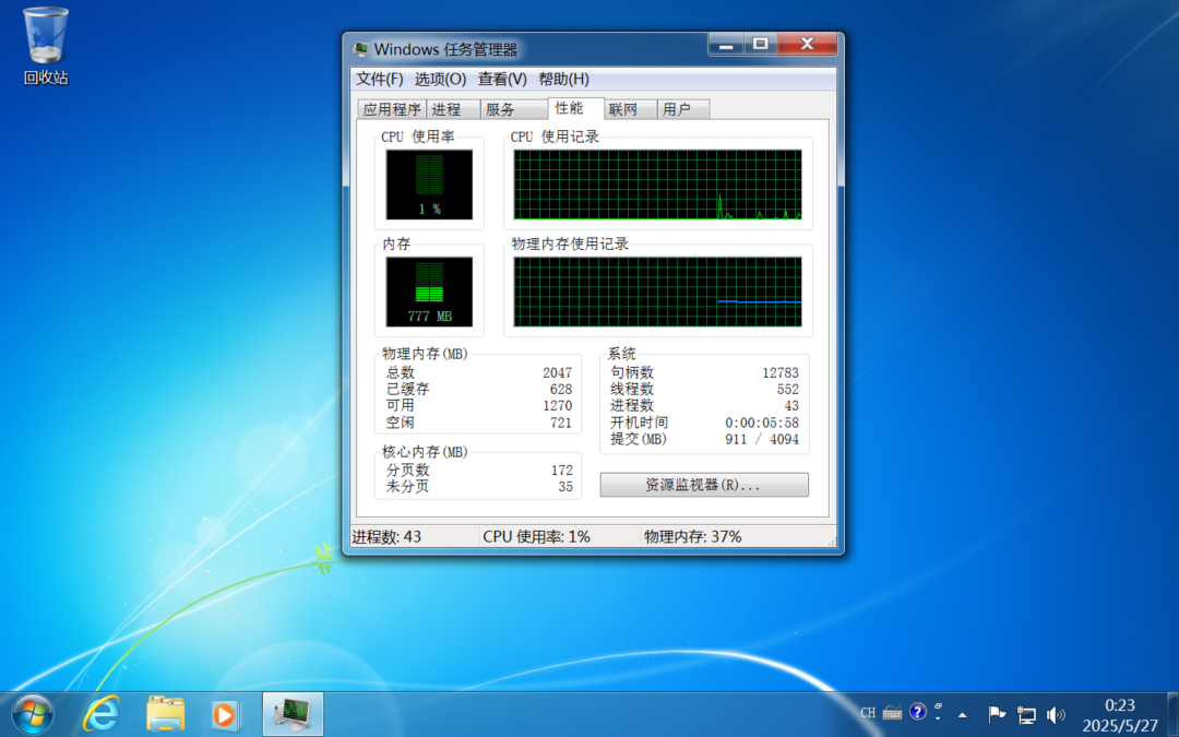 2G内存下,初始内存占用0.77G左右