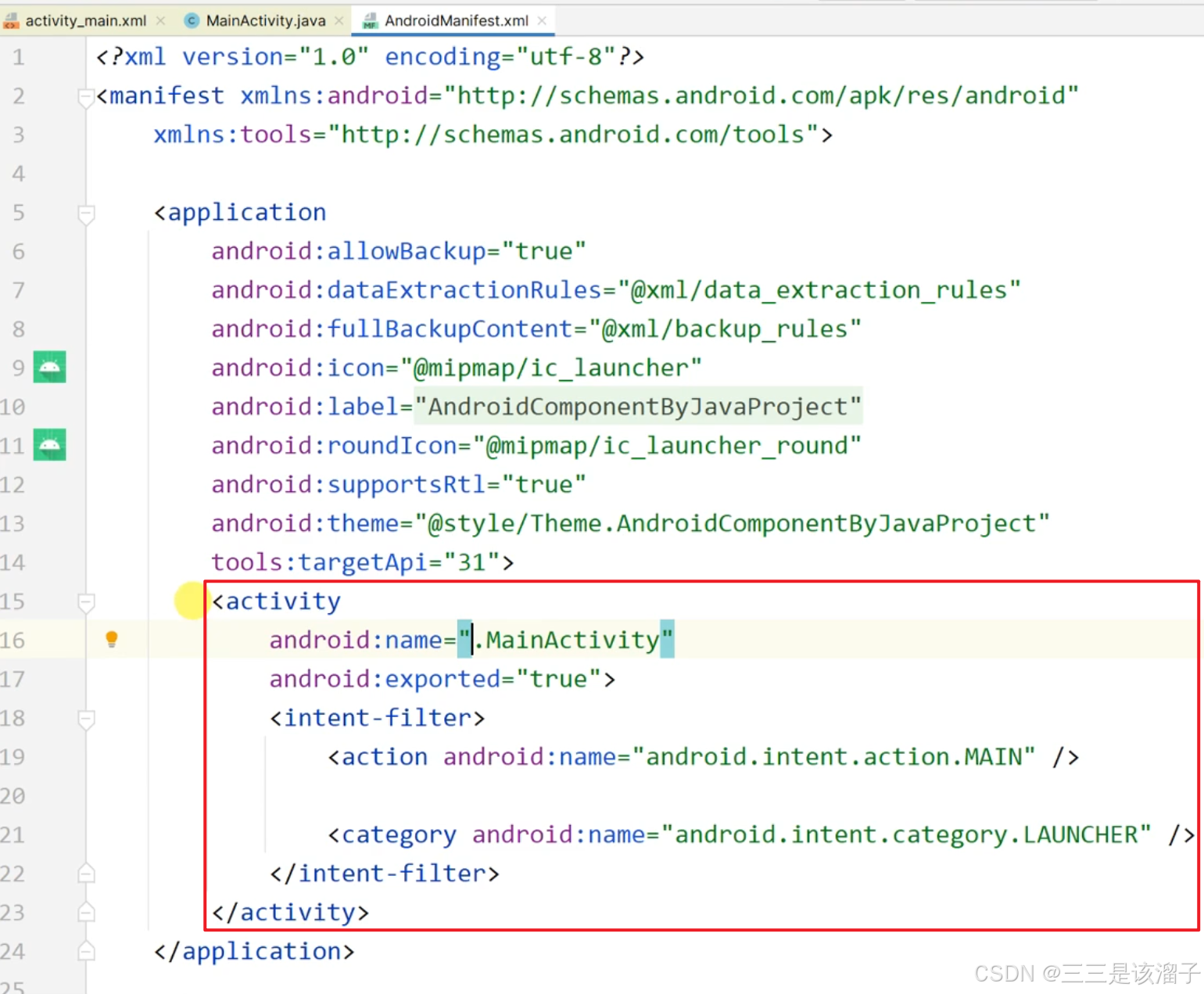android:name="com.xlong.androidcomponentbyjavaproject.SecondActivity"