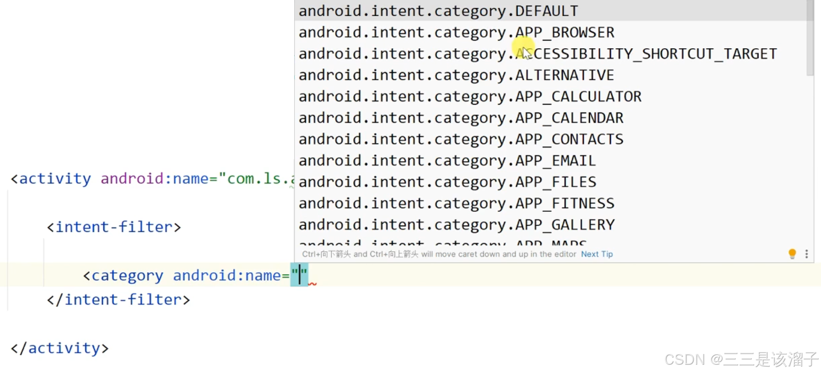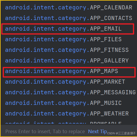需要再清单中进行声明;安卓中提供了一些隐式启动的类型,android.intent.category.DEFAULT表示默认,90%以上的需求用DEFAULT就可以了;EMAIL和MAPS也有在用