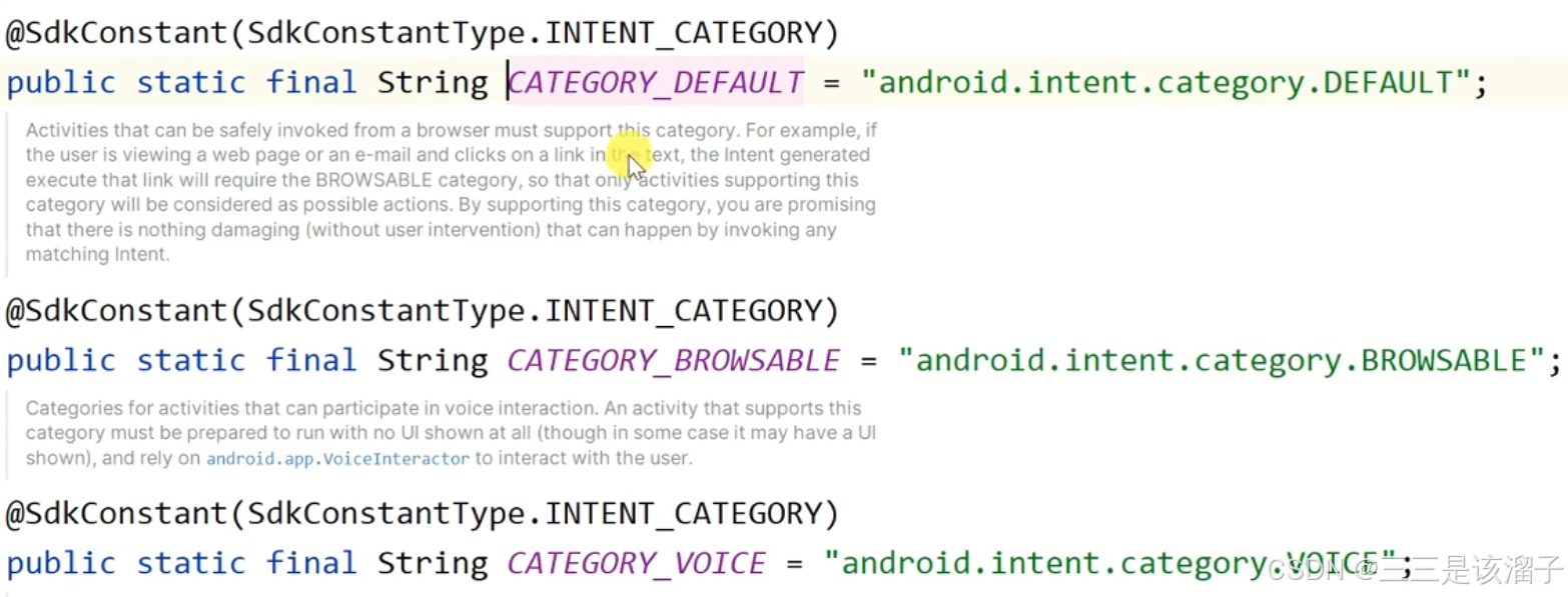 intent.addCategory(Intent.CATEGORY_DEFAULT);//没有这句代码也无所谓,系统会自动添加的