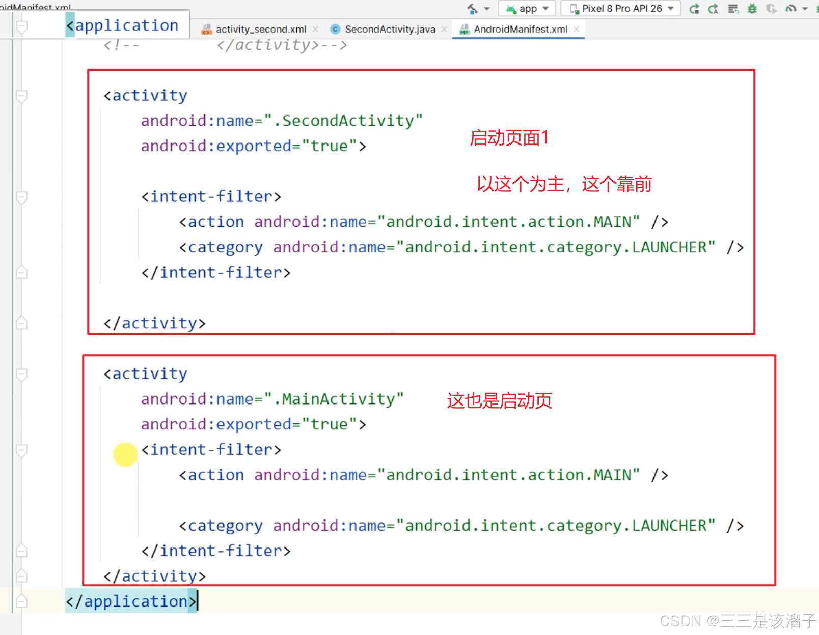 才会作为应用的主入口 ,也就是点击应用图标最先启动的页面。