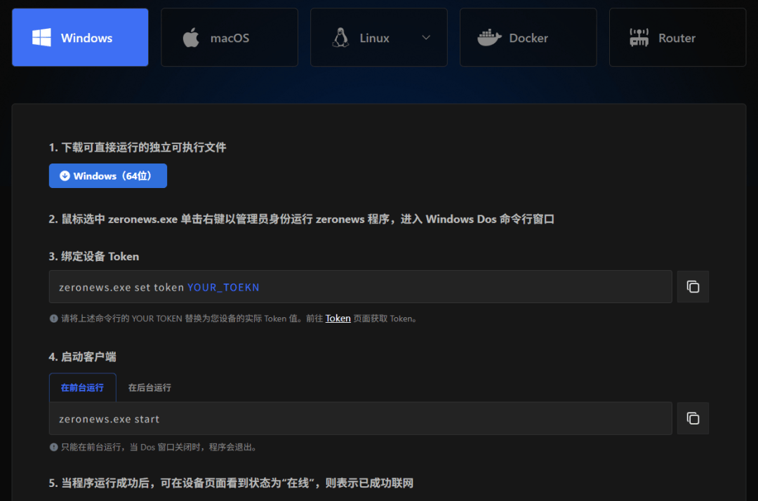 企业相关人员前往ZeroNews官网下载Agent,完成账号注册,在内网服务器上安装—登录Agent。