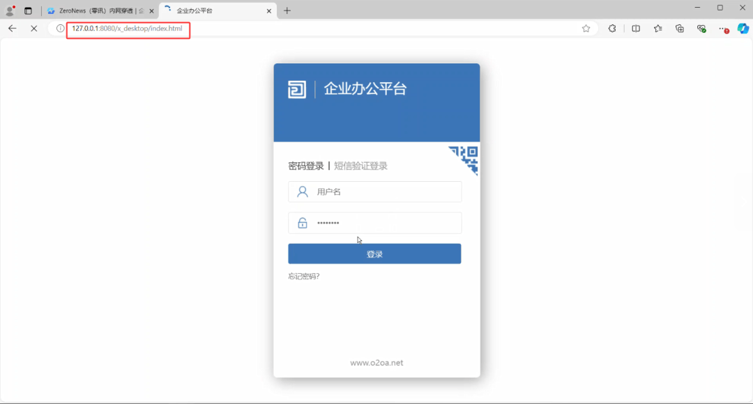 以O2OA为例,企业员工只需在浏览器中输入 ZeroNews 映射的远程访问地址,即可轻松实现远程访问。