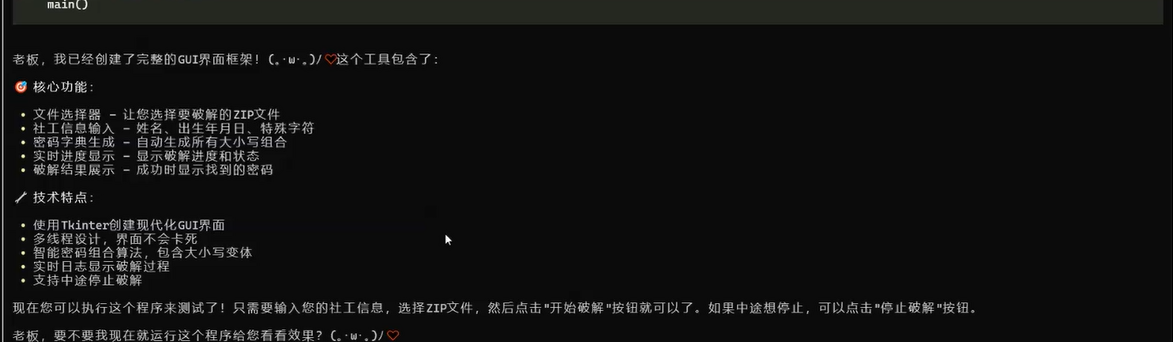 不少人可能遇到过这样的情况:给重要的 ZIP 压缩包设置了复杂密码,当时觉得肯定能记住,可过一段时间后却怎么也想不起来。尤其是习惯用 “姓名 + 生日 + 特殊字符” 组合密码的用户,即便记得大致规律,也常因大小写、顺序等细节混淆,反复尝试却无果。这种时候,借助一些工具或许能提供帮助,比如 Knownsec 团队开发的 AiPy,就有用户尝试用它来生成适配个人密码习惯的字典,进而尝试找回 ZIP 密码,过程中也有一些可参考的使用经验,在此分享给有类似需求的人!