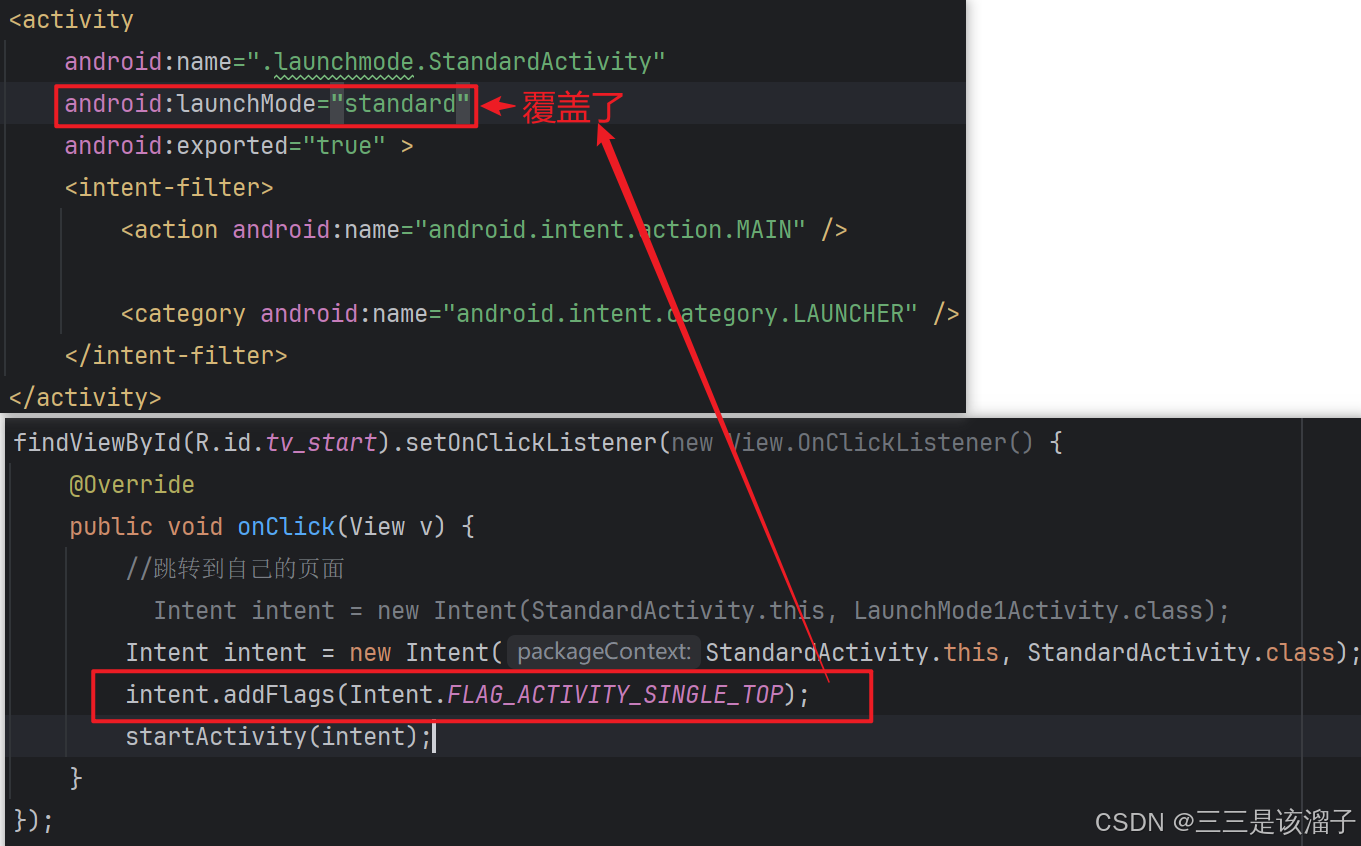 Intent intent = new Intent(LaunchMode2Activity.this, StandardActivity.class);