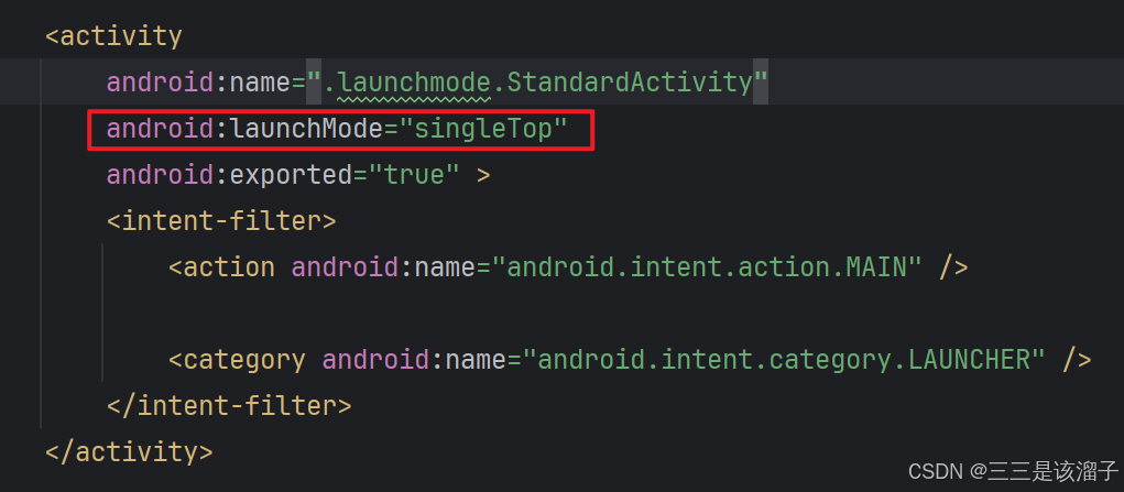 :如果要启动的 Activity 已经位于任务栈的顶部,则不会创建新实例,而是调用其 onNewIntent()