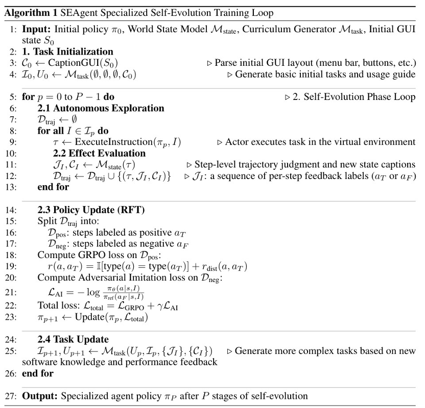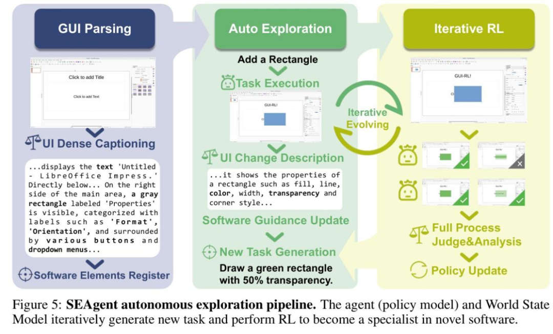当前计算机使用智能体(CUA)的发展,主要依赖于大量昂贵的人工标注数据 。这极大地限制了它们在缺少现成数据的新颖或专业软件中的应用能力 。为了打破这一瓶颈,来自上海交通大学和香港中文大学的学者们提出了 SEAgent,一个全新的、无需任何人类干预,即可通过与环境交互来自主学习和进化的智能体框架。