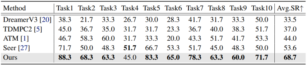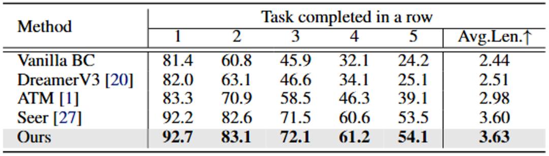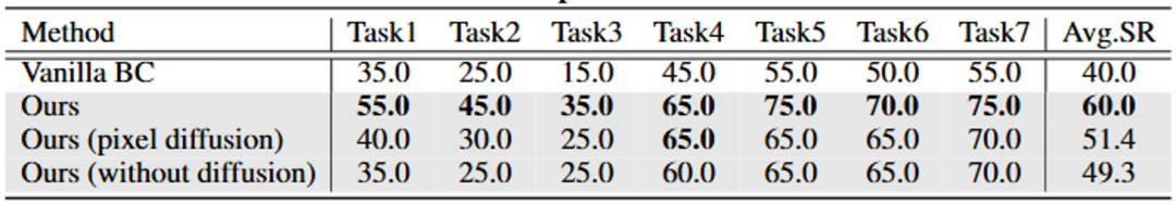 在 CALVIN D-D 数据集上,LaDi-WM 同样展示了在长时任务中的强大性能(表 2)。