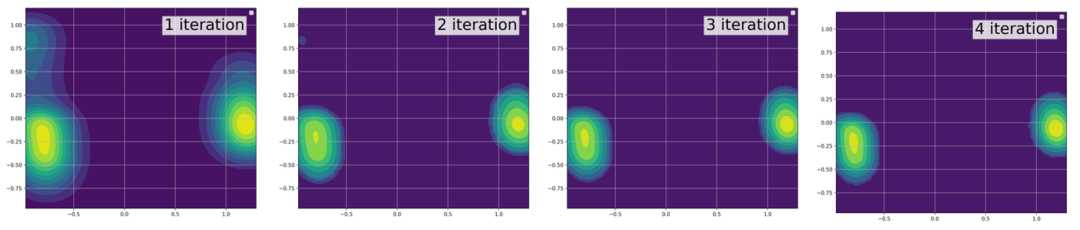 团队进一步探索了利用世界模型迭代优化的工作原理。团队收集不同迭代轮次下策略模型的输出动作并绘制其分布,如图 5 所示。迭代优化的过程中,输出动作分布的熵在逐渐降低,这表明策略模型每一步的输出动作更加稳定,从而提升整体的抓取成功率。