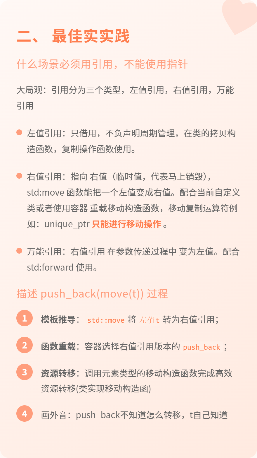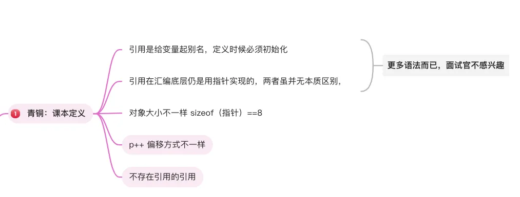 sizeof(pointer) 固定是 8 个字节;ptr++ → 偏移一个对象的地址;ref++ → 直接让变量本身加 1小青疑惑:为什么我全部回答了,面试官还是不满意 ,我回答不高深吗?