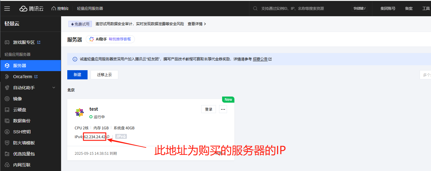 购买成功后,在腾讯云控制台可以查看服务器实例。你需要记录以下信息: