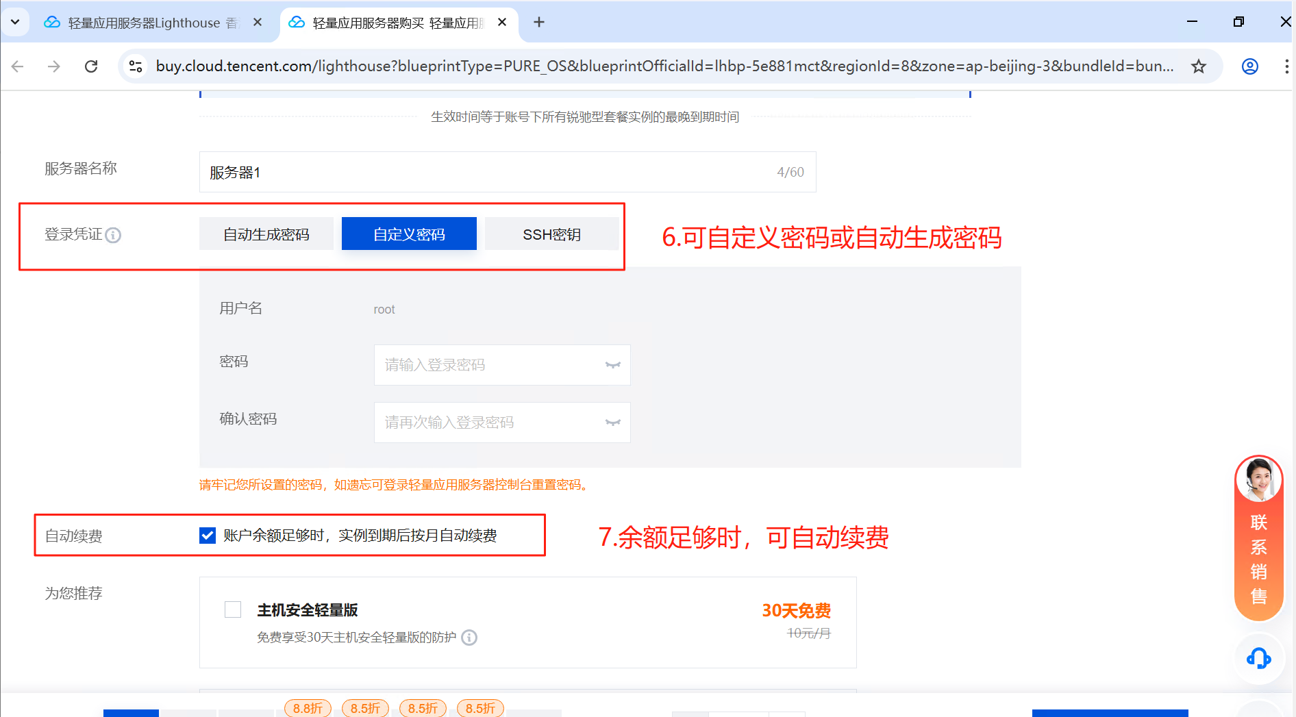 登录凭证:推荐选择 自定义密码,方便后续配置