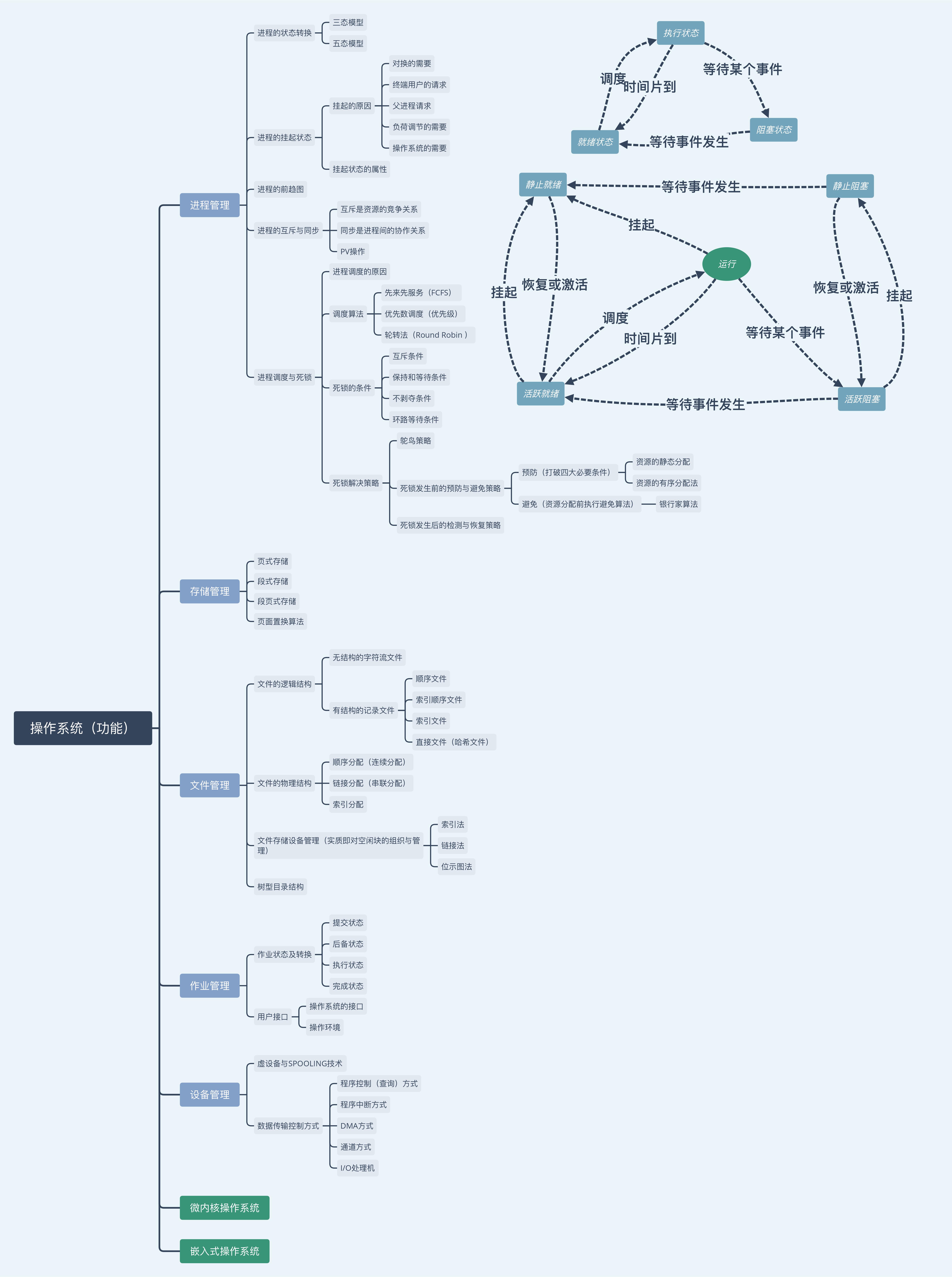 思维导图首先以思维结构为主,其次以考试的内容进行一定的改动(如本次,将“嵌入系统”放在了“操作系统(功能)“分类中)。