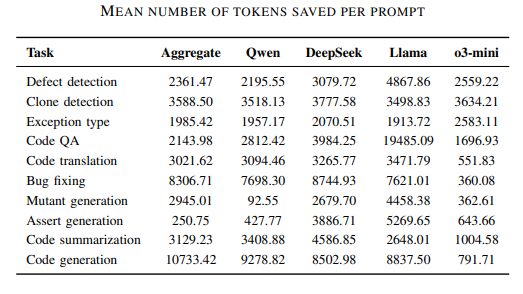 研究统计了每个任务相对于基线方法的平均token节省情况: