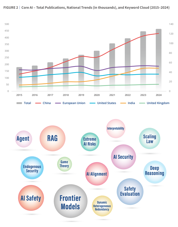 2024年中国AI出版物占全球29% (27.39万篇),远超美国(8.57万篇)