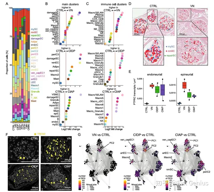 VN特异性表现为淋巴管内皮细胞(LEC)减少和浆细胞扩增,CIDP与VN共享神经束膜细胞(periC3)增多