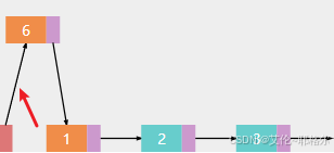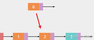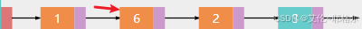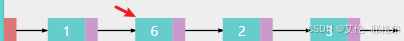 c.然后让节点1指向新节点6,这里有个细节是,插入时,还要知道插入位置的前一个节点的位置