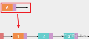 c.然后让head的next指向新插入的节点6,此时原来节点1就会与head自动断开