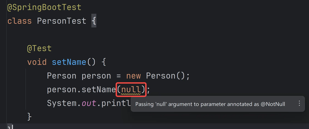 新版本采用JSpecify注解来声明其API的空值安全性,使用@Nullable表示值可以为空,使用@NonNull表示不能为空。这与IntelliJ IDEA配合使用可以提供警告或错误消息,如下面的代码所示: