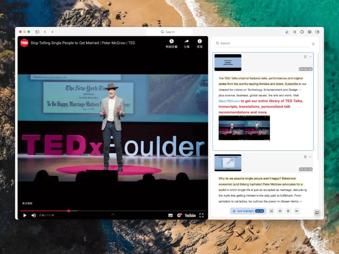 FlexNote 支持视频、音频、PDF 的注释功能。你可以在看 YouTube 或 B 站时,直接添加时间戳笔记;也可以在阅读论文 PDF 时,边批注边整理思路。这种“边看边记”的方式,让学习变得更高效,也更沉浸。