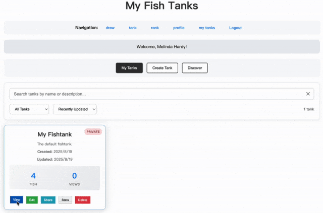 如果注册了账号,还可以把自己画的鱼放到专属鱼缸。