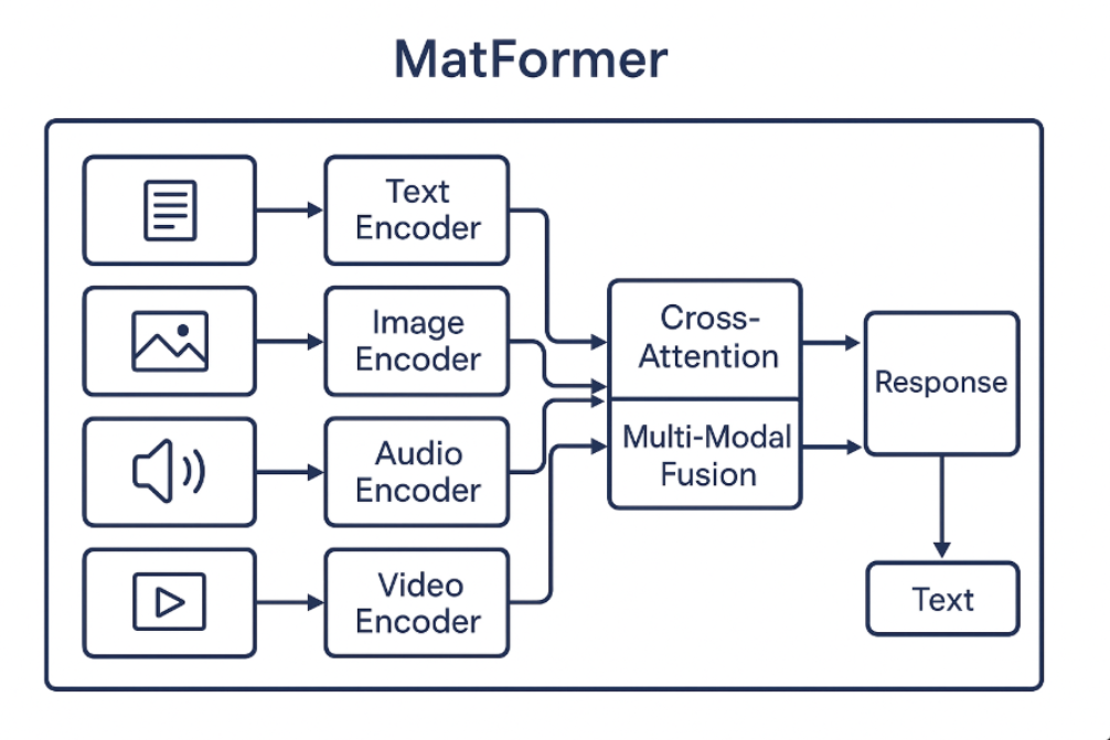 Gemma 3n 的核心是全新设计的 MatFormer(Matryoshka Transformer)架构,仿佛“套娃”结构,一份模型中嵌套多个子模型,支持弹性推断机制 (谷歌开发者博客)。
