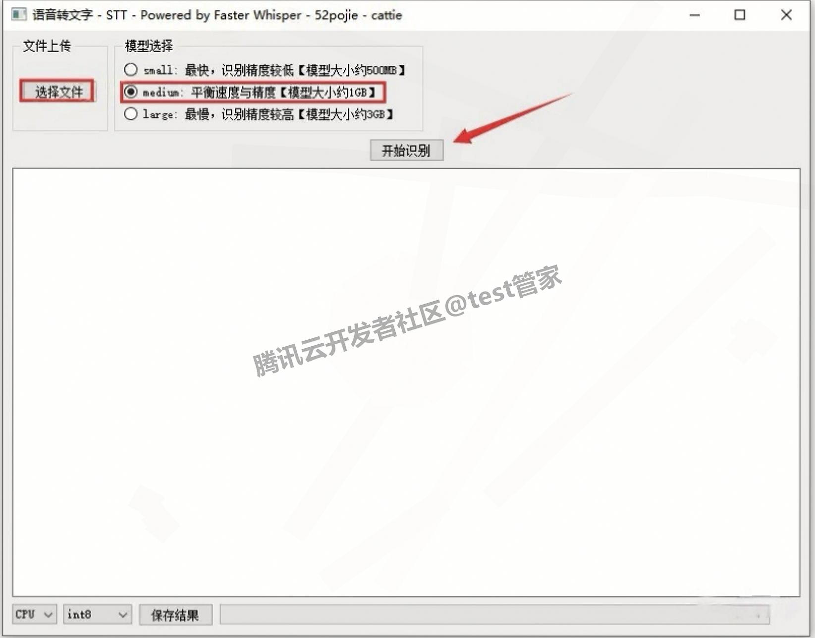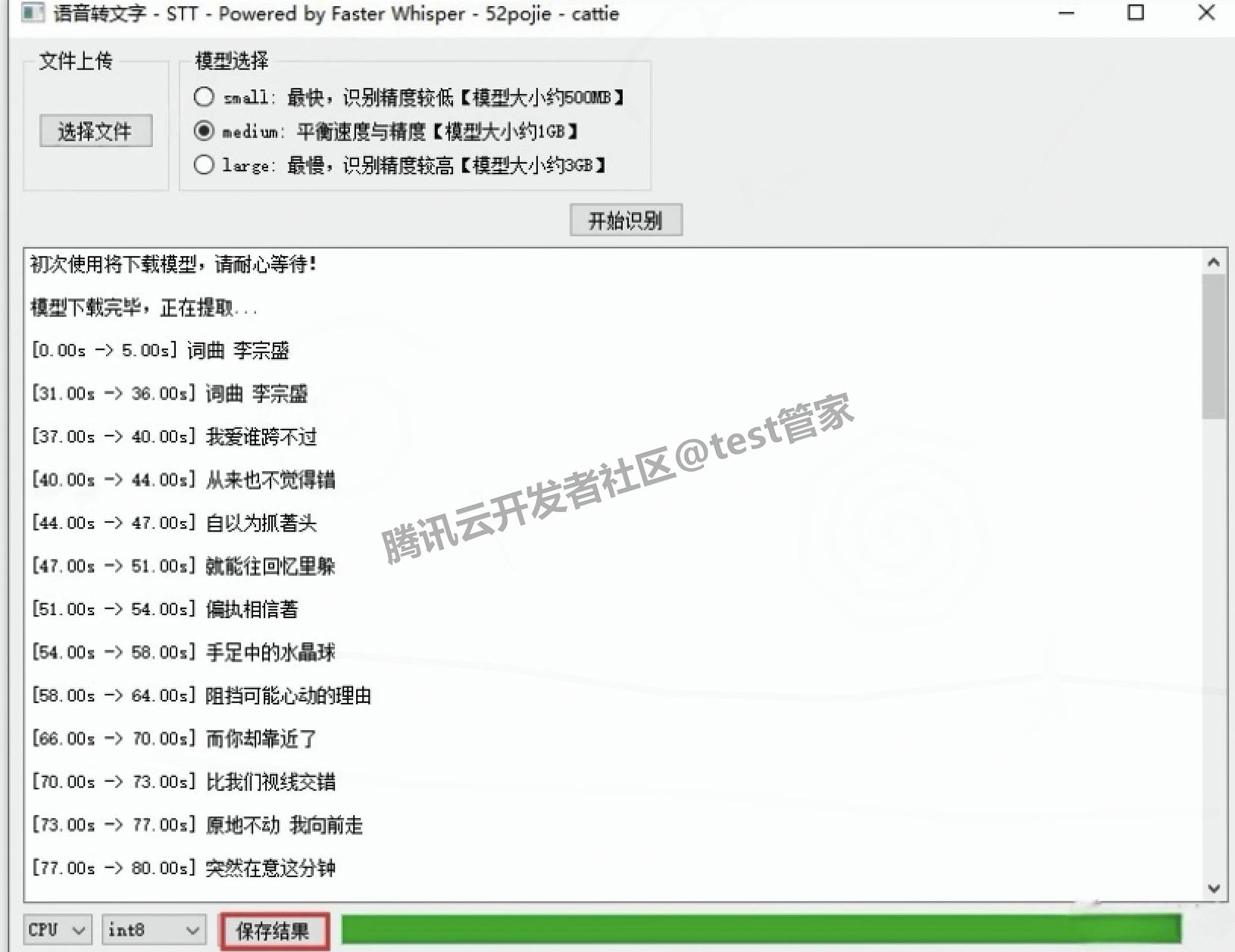 → 解决:换 small/medium 模型,CPU 模式选 “int8”;关闭微信、浏览器、视频软件,让电脑专注处理