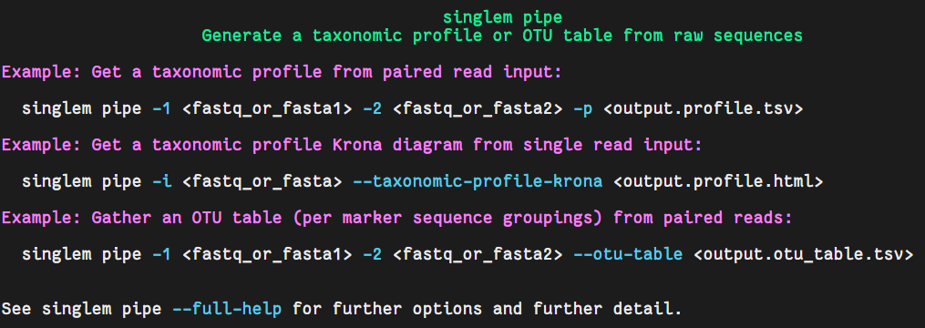 singlem pipe -1 <fastq_or_fasta1> -2 <fastq_or_fasta2> -p \