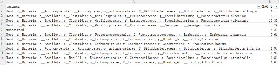 # 表格可视化,相对丰度