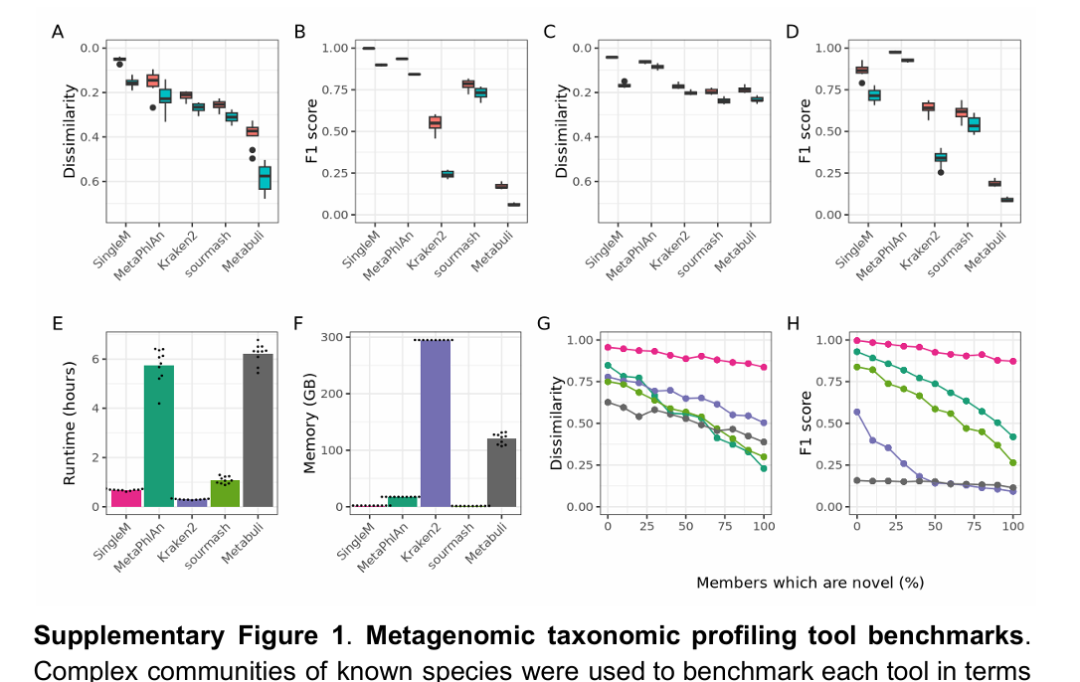 对标的是MetaPhlAn啦,不过作者也承认,MetaPhlAn在低丰度的物种预测上更准些,当然我们知道基于marker基因的弱点基本就是容易假阴性啦!号称速度上比kraken2慢了点,但是内存占用上比kraken2省了不只一点半点呀!在检测无参考基因组的新型微生物时表现最佳,其算法通过氨基酸空间比对提升敏感性,且资源消耗更低(仅需2GB内存)
