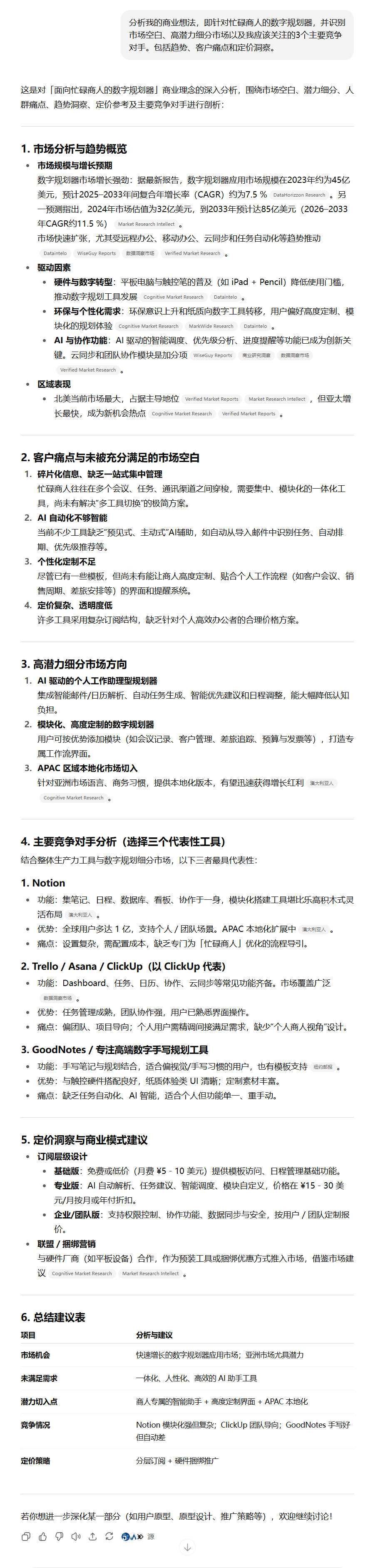 成功的创业者总是能先人一步发现市场蓝海。在动手之前,先用AI进行一次全面的市场扫描。