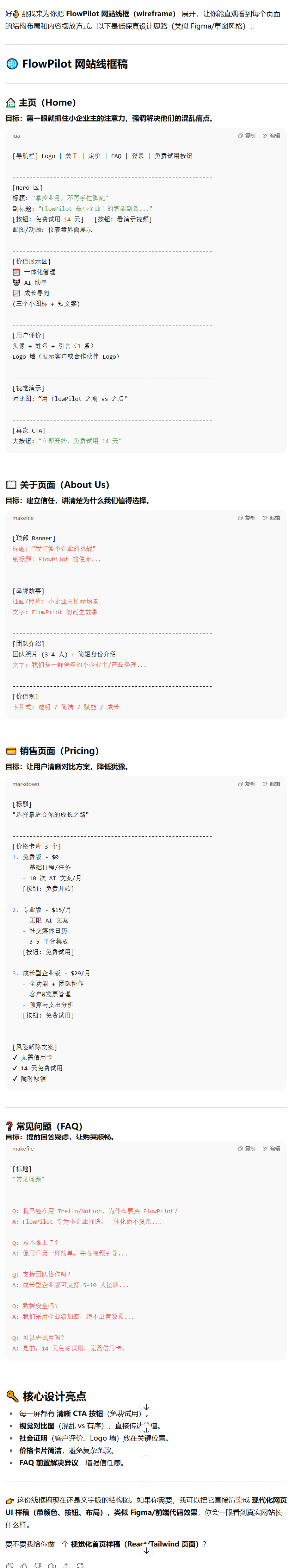 再生成文案:让AI直接为你创作各页面的核心文案。