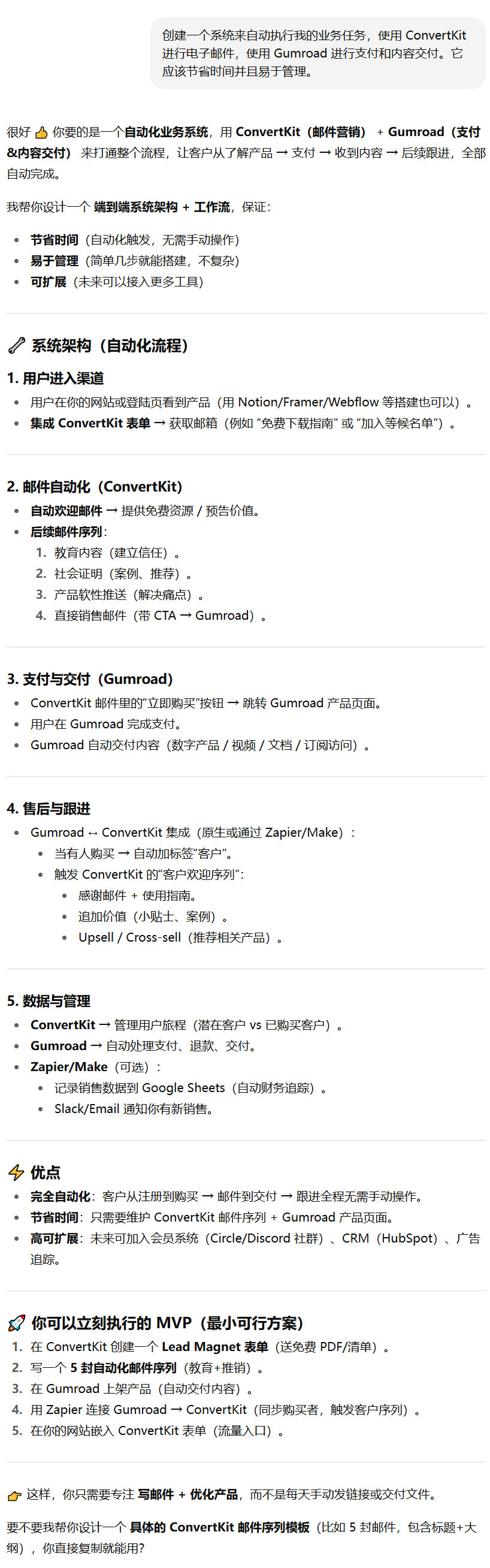 创建一个系统来自动执行我的业务任务,使用 ConvertKit 进行电子邮件,使用 Gumroad 进行支付和内容交付。它应该节省时间并且易于管理。