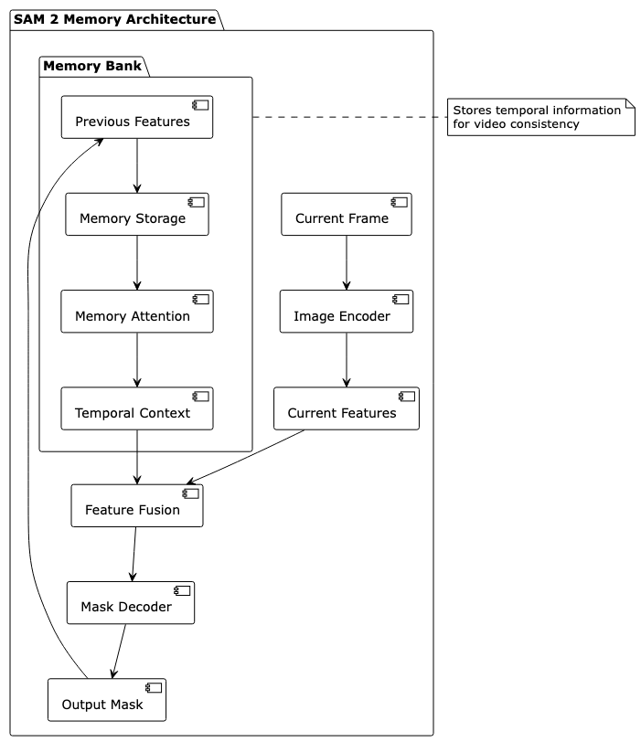 SAM 2 的秘诀在于其独特的内存机制和时序处理能力: