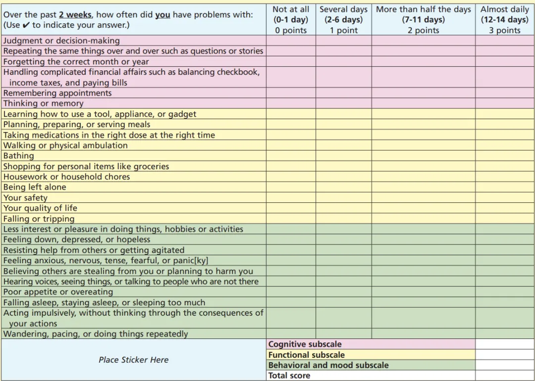 HABC-M 量表最初用作评估初级保健机构老年患者身体、认知和精神功能的工具。随着时间的推移,它已扩展为三个版本:自我报告、护理人员报告和混合版本。这三种版本均已验证可用于评估PICS。其中,健康老龄化大脑护理监测自我报告 (HABC-MSR) 由于其内部一致性和可靠性高,已在多个国家用于评估 PICS。它包含 27 个条目,评估 PICS 的三个维度(身体、认知和心理)。生理维度由 11 个条目组成,侧重于进行日常活动的能力和生活质量。认知维度由 6 个条目组成,用于评估记忆、判断和决策。心理维度由 10 个衡量焦虑、抑郁和 PTSD 的条目组成。每个条目的评分范围为 0(完全没有)到 3(几乎每天),总分为 0-81。与 PICSQ 类似,HABC-MSR 得分越高表示症状越严重。