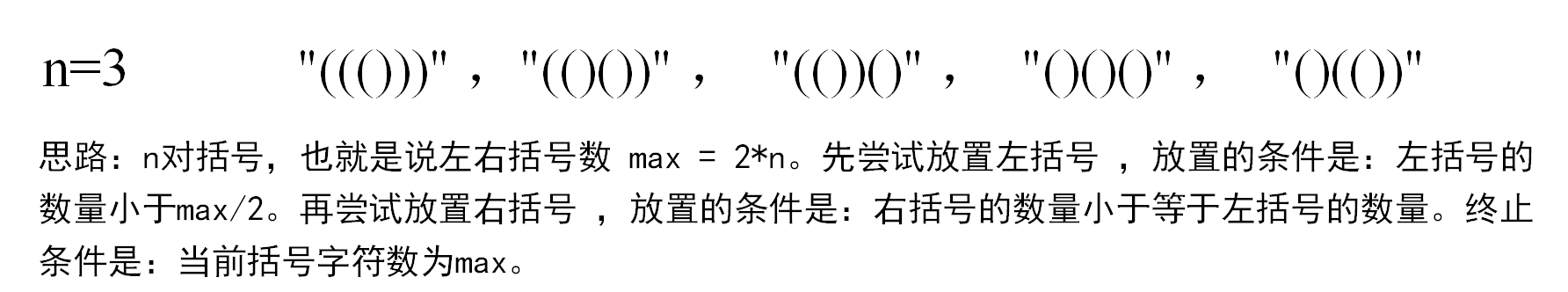 括号的生成可以使用回溯算法完成,结合回溯算法模板,对应的思路如下: