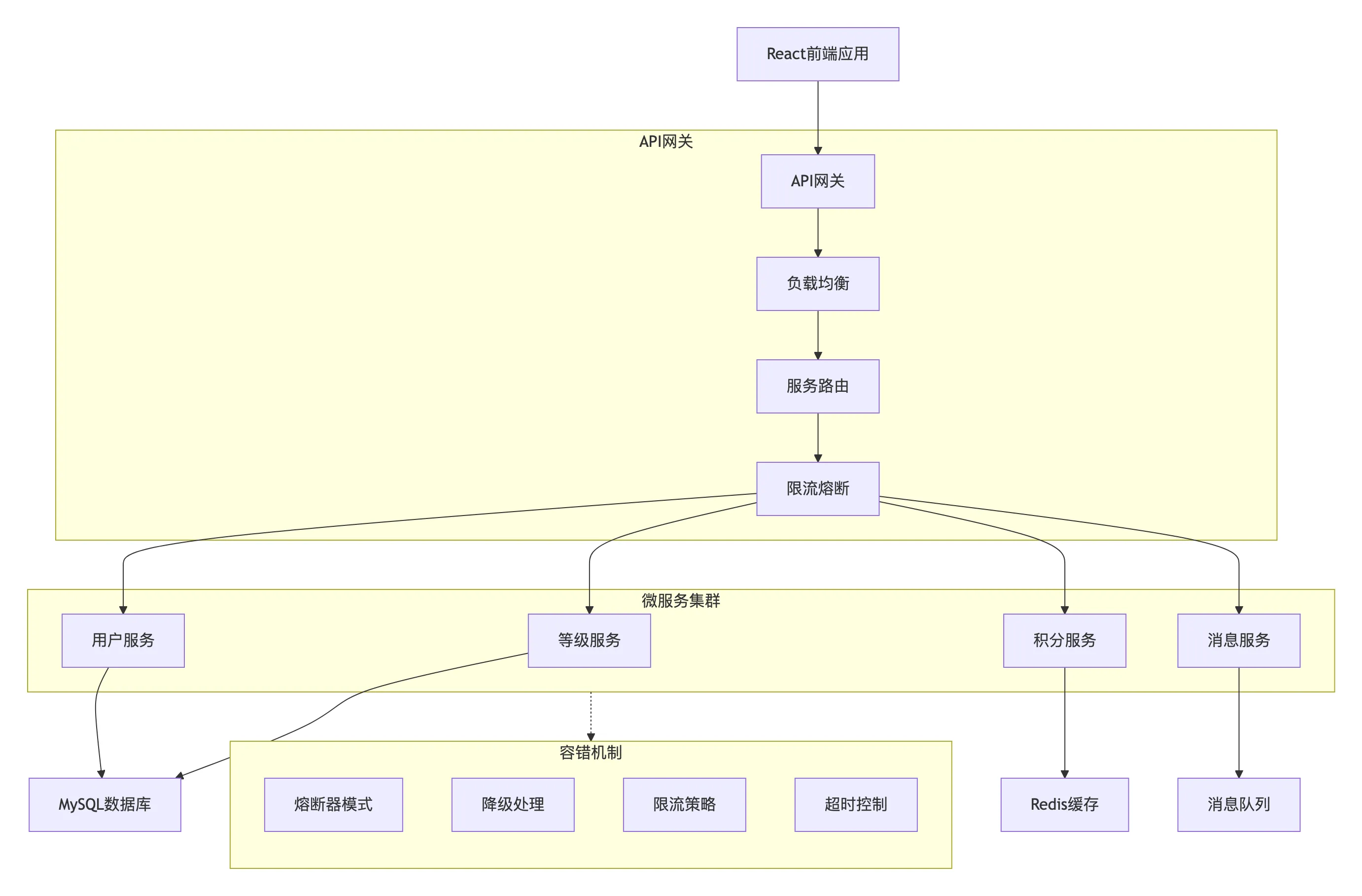 我向 CodeBuddy 提出了以下问题:"如何为React前端的微服务架构设计一套完整的容错机制?需要考虑用户服务、积分服务、等级服务和消息服务之间的依赖关系。"