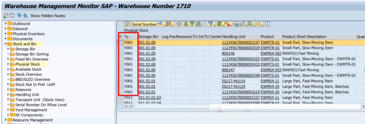 如果勾选这个标记,则上架到该storage type里的库存的相关信息比如inbound delivery号码等被删除掉(查询库存的时候不显示这些关联信息了)。比如如下的存储类型Y001,是一个暂存区域,