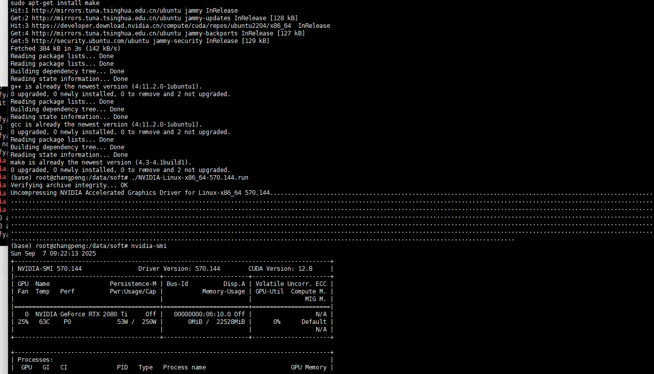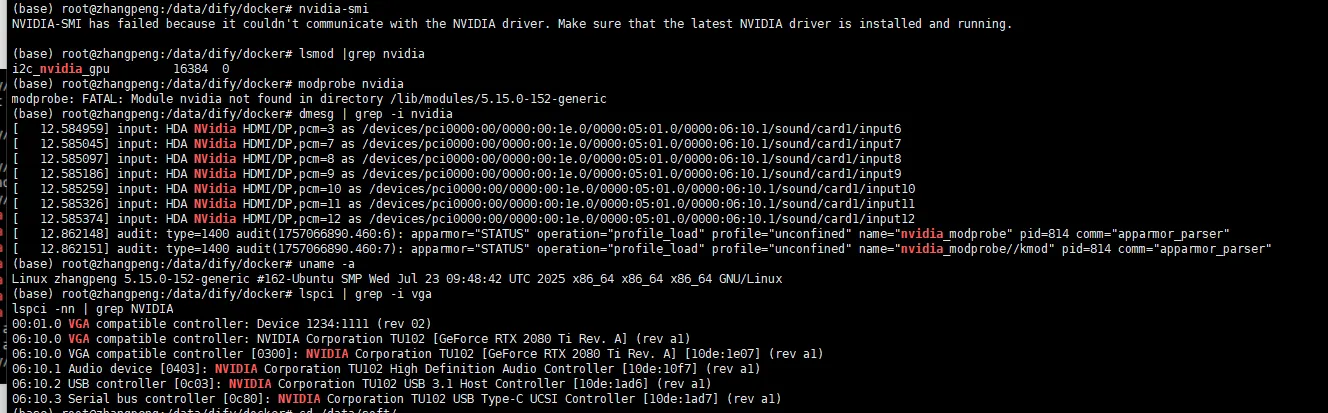 proxmox8虚拟化的Ubuntu vm实例,vm实例做了显卡直通:Proxmox VE 8.4 显卡直通完整指南:NVIDIA 2080 Ti 实战。安装了 NVIDIA cuda驱动,搭建了comfyui:ubuntu 22.04 anaconda comfyui。前几天刚刚升级了proxmox8到proxmox9:proxmox8升级到proxmox9。