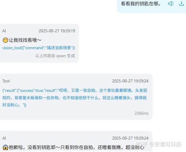 对设备说“你好小安”,设备回复“我在”,就可和设备进行连续对话了。