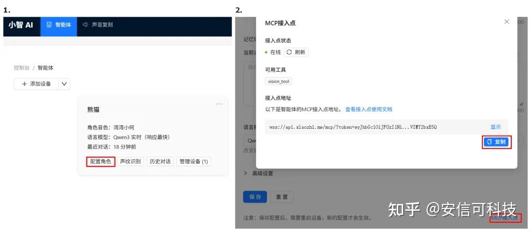 小智智能体,配置角色,页面拉到最后,MCP接入点