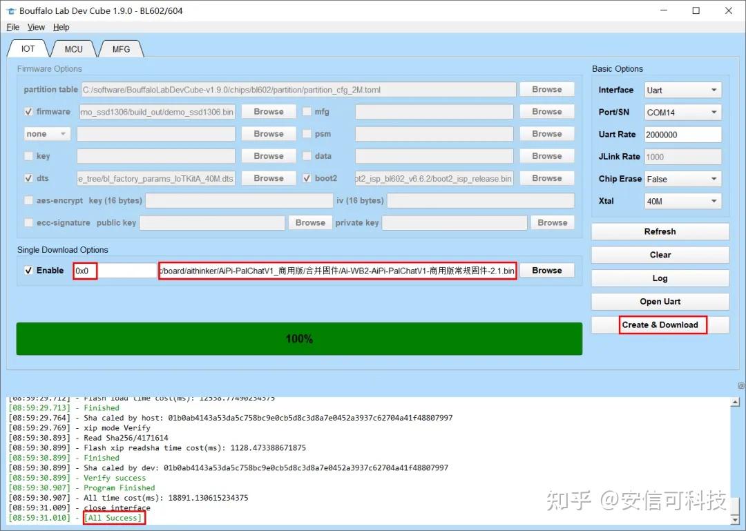 右手按住boot键,左手将GND,3V3斜插入孔中按住,然后换右手按住,左手将TX,RX接到模组上按住,其他手指点击Create & Download进行烧录。