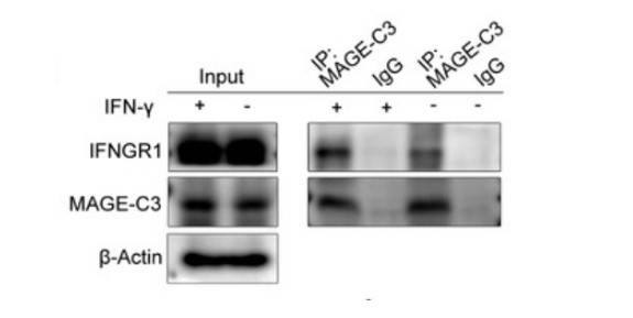 结果如下: MAGE-C3在食管鳞癌组织中呈高表达。MAGE-C3的高表达与食管鳞癌患者的淋巴结转移风险和生存率相关。功能实验表明,MAGE-C3通过激活上皮间质转化(EMT)促进肿瘤转移。MAGE-C3抑制抗肿瘤免疫并调节T细胞的细胞因子分泌,这意味着免疫抑制功能。从机制上讲,MAGE-C3通过与IFN-γ受体1(IFNGR 1)结合并加强IFNGR 1与信号转导和转录激活因子1(STAT 1)之间的相互作用,促进IFN-γ信号传导并上调程序性细胞死亡配体1(PD-L1)。有趣的是,MAGE-C3在免疫活性小鼠中比在免疫缺陷裸鼠中显示出更高的肿瘤发生,证实了MAGE-C3的免疫抑制作用。此外,携带MAGE-C3过表达肿瘤的小鼠表现出更差的存活率和更多的肺转移,其中CD 8+浸润的T细胞减少,程序性细胞死亡1(PD-1)+CD 8+浸润的T细胞增加。
